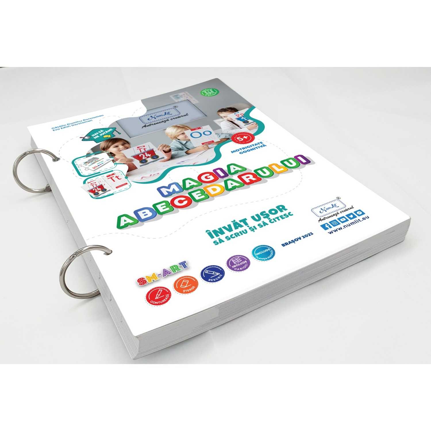 Este alfabetarul conturabil din seria NumLit – cartea cu Trenulețul Literelor și Numerelor, concepută pentru:
