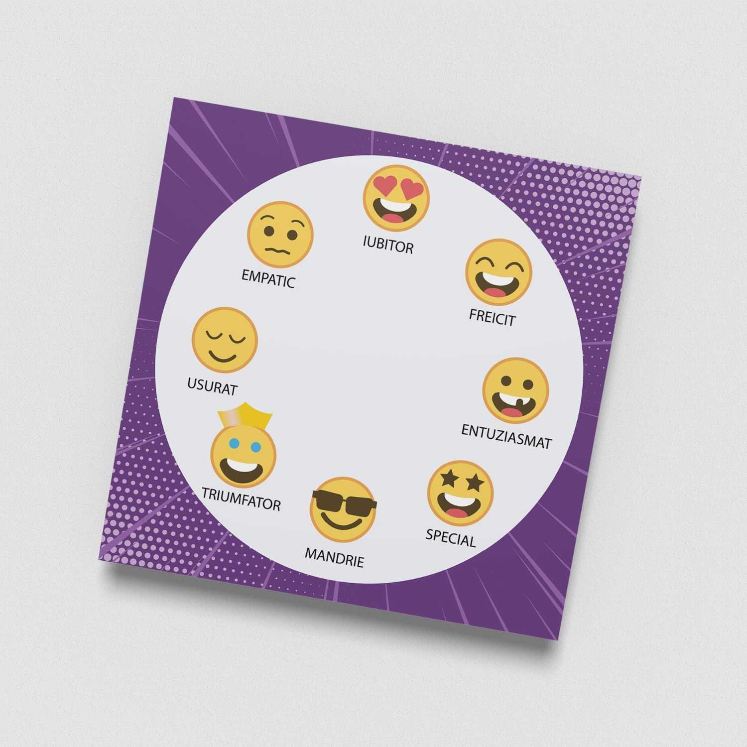 Plansa ajută la cunoașterea și aprofundarea principalelor stări și emoții. Aceasta include 16 emoții esențiale pe care copiii le pot învăța și identifica.
