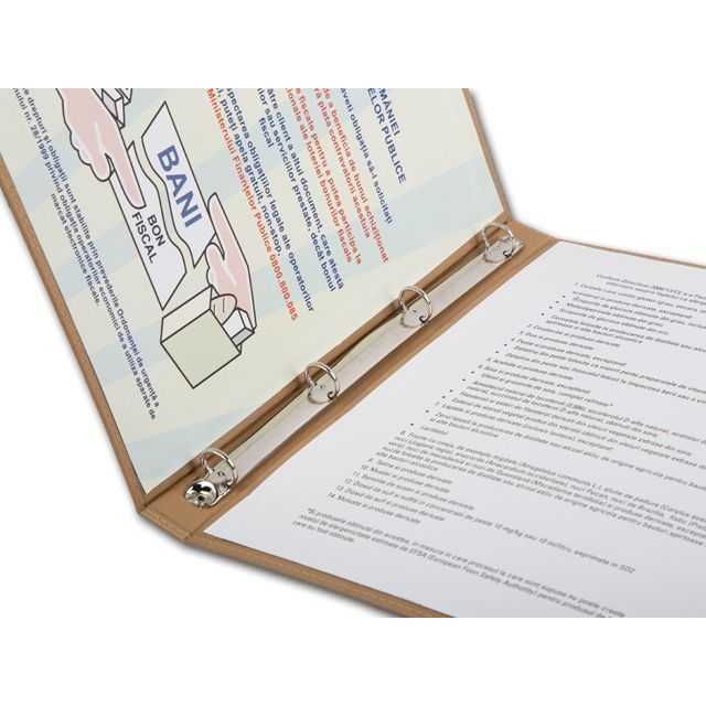 Dimensiuni standard : A5 , 17x24, A4+ Pentru inserturi tiparite introduse in folii de plastic alegeti dimensiunea A4 ++