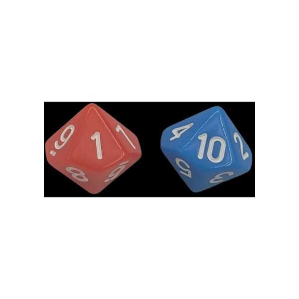 Set de 2 zaruri cu 10 fete numerotate de la 1 la 10, cu o inaltime de 1,65 cm fiecare